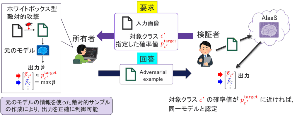 深層ニューラルネットワーク(DNN)モデルの無断再利用は,その高い開発コストと商業的価値を考慮すると,深刻な懸念事項となっています.本研究では,確率制御型の敵対的攻撃を活用した所有権検証フレームワークを提案しています.従来の研究が主に脆弱性評価やモデル精度の低下を目的として敵対的攻撃に焦点を当てているのに対し,我々のアプローチでは,モデルに保持されている知識を示すための仕組みとしてそれらを再利用します.元のモデルへのホワイトボックスアクセスを利用し,ターゲットクラスの出力確率を指定された値に調整する敵対的サンプルを生成します.これがモデル所有権の証拠として機能します.