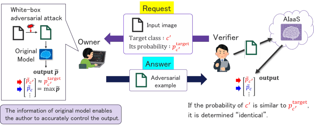 The unauthorized reuse of deep neural network (DNN) models has become a serious concern, given their high development costs and commercial value. This study proposes an ownership verification framework that leverages probability-controlled adversarial attacks. Unlike conventional research, which mainly focuses on adversarial attacks for vulnerability assessment or degrading model accuracy, our approach repurposes them as a mechanism to demonstrate the knowledge retained in a model. By exploiting white-box access to the original model, adversarial examples are generated to adjust the output probability of a target class to a specified value. This serves as evidence of model ownership.